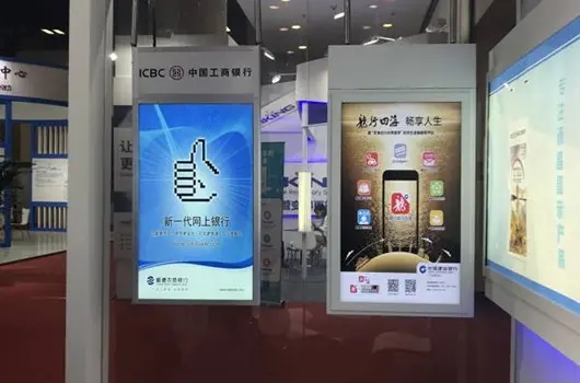 雙面吊掛廣告機被廣泛應用于大型商場、超市、酒店大堂、銀行、影院及其他人流匯聚的場所,已經得到越來越多的商業業主的青睞。
